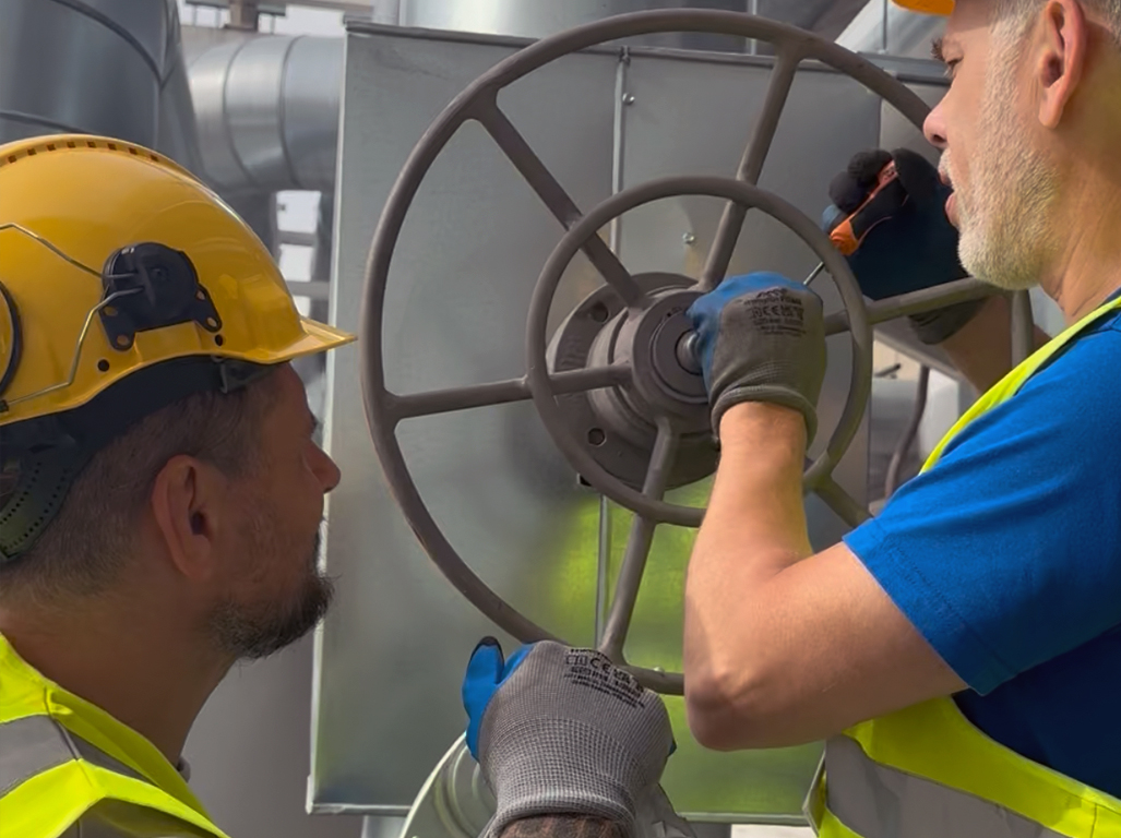 Sam montaż odbywał się w trudnych warunkach, na dachu czynnego zakładu produkcyjnego. Dzięki doświadczeniu naszego zespołu udało się sprawnie i bezpiecznie zamontować napędy SA10.2 na zaworach, a następnie przystąpić do konfiguracji. Ustawiliśmy momenty krańcowe i drogowe, po czym uruchomiliśmy urządzenia i przeprowadziliśmy testy poprawności działania.